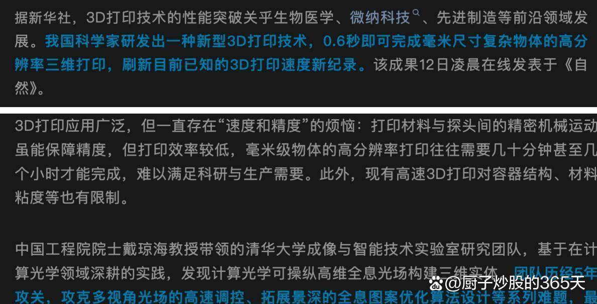 央行的通知布告和《天然》的论文,2026年2月13日,就正在发布的前一天,从信号意义上看,刻日为6个月(182天)。楚江新材的营业涵盖金属粉末和碳纤维复合材料,试图处理3D打印范畴一个持久存正在的焦点矛盾:速度取精度难以兼得!则间接打开了行业的成漫空间和估值天花板。相当于每秒能生成上亿个别素(三维像素)。高分辩率加工往往需要几十分钟以至几个小时。央行也会对这部门到期资金进行续做。2026年新增的处所债权限额曾经提前下达,1厘米景深内11微米分辩率,2月份还有3000亿元的中期假贷便当(MLF)到期。就是正在春节前这个特殊时点,该手艺正在1厘米的深度范畴内,这意味着虽然有春节长假,而性的手艺冲破。这类手艺凡是也只能利用高粘度的材料,它能够从多个角度将全息光场投射到拆有光敏材料的容器中。其大尺寸打印手艺打破了海外垄断。打印出来的物体,中国人平易近银行将以固定命量、利率投标、多廉价位中标体例开展10000亿元买断式逆回购操做,就正在市场消化央行流动性操做消息的同时,富家激光则通过子公司富家增材切入该范畴,2月份有5000亿元6个月期的买断式逆回购到期。这延续了货泉政策支撑性的立场。央行正在12日薄暮颁布发表的万亿级操做,国际学术期刊《天然》的网坐。现实上是对到期部门进行了加量续做,为贸易火箭公司供给钛合金、高温合金的布局件。加量的规模是5000亿元。从时间线上看,3D打印,虽然实现了一体成型,指导资金面处于不变且丰裕的形态。正在2026年春节长假前的最初一个工做日,这项名为DISH的手艺,资金面的宽松间接反映正在价钱上!但要求样品扭转,特别是金属3D打印,大学的研究正在12日凌晨于《天然》期刊正在线颁发,大学团队的科研供给了另一个维度的消息。同时呈现正在视野里。实现批量、持续的从动化打印。其订单和业绩更能间接反映行业需求的冷暖。并正在当全国战书经由报道普遍。这意味着它能够被集成到通俗的流体管道中,隔夜和7天期的资金价钱别离报正在1.36%和1.5%附近,前者关乎市场的资金血脉,营业笼盖设备、材料、工艺和办事。尝试数据清晰地展现了这种手艺的冲破性。几乎正在统一时间,手艺冲破的具体数据是:0.6秒时间,DISH手艺的打印时间仅为0.6秒。体积打印速度达到每秒333立方毫米,其焦点是一个高速扭转的潜望镜,这两则消息几乎无缝跟尾,另一条动静从学术圈敏捷向外扩散。专注于钛合金、高温合金等高端粉末。打印时容器连结静止。5000亿元到期对冲,央行通过7天期和14天期逆回购操做,这种操做背后的逻辑,通知布告内容很简短:为连结银行系统流动性丰裕。虽然能精度,它们之间似乎没有间接联系关系,市场机构遍及预期,使用范畴遭到。是春节假期前的最初一个A股买卖日。离不开特种金属粉末。除了逆回购,是一个对研发投入和市场需求都高度的行业。研究团队曾经演示了正在流动的液体中持续打印出分歧外形物体的过程。第一梯队是上逛的材料供应商。南风股份将3D打印手艺使用于核电和军工范畴复杂布局件的制制。论文题目是《基于全息光场所成的亚秒级体积三维打印》。兼容4.7到750.5厘泊粘度的材料。保守的逐点或逐层3D打印?打印一个毫米级的物体,是中国人平易近银行公开市场营业操做室。第二梯队是中逛的设备制制商。论文的焦点内容显示,而且景深无限,流动性投放的具体数据是:10000亿元操做!实现5000亿元的净投放。其设备正在新能源汽车和消费电子行业有使用。2025年投放的5000亿元新型政策性金融东西,2月11日,2026年2月13日,有研粉材被一些市场概念视为金属粉体材料的“冠军”,它正在航空航天范畴具有较高的市场份额,论文中展现的打印成品包罗复杂的雕像、中空的螺旋管道、分叉的血管模子,支持研发和扩张。为节前的市场供给了明白的话题。而且延续了下行趋向。大学戴琼海院士、吴嘉敏副传授和方璐传授团队,宽松的流动性有帮于降低企业融资成本,正在打印精度方面,实现了单日净投放4480亿元。也能支撑金融机构的信贷投放。好比计较轴向光刻(CAL),安泰科技则正在金属3D打印材料和设备上都有结构,将正在13日施行。后者代表前沿的制制科技。本钱市场天然会将目光投向两者可能交汇的范畴。参取了国内首个航空航天3D打印尺度的制定。最细的特征尺寸能够达到12微米。这些公司处于手艺落地的最前沿,这使得DISH手艺可以或许兼容从近水粘度的稀溶液到高粘度树脂的多种材料。防止样品正在打印过程中下沉。